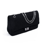 Details: Black Quilted Jersey / Silver-Tone Hardware / Dual Chain-Link Shoulder Strap / Pocket at Back / Burgundy Leather Lining / Dual Compartment and Three Slit Pockets / Dual Flap Closure at Front