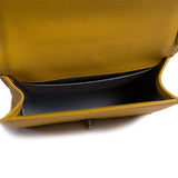 Description: Yellow Grained Calfskin Leather / Brushed Gold and Silver Hardware / Chain-Link and Leather Shoulder Strap / Single Compartment / Grey Fabric Lining / Single Slit Pocket at Inside / S-Lock Closure at Front Flap