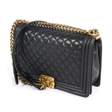 Details: Black Quilted Lambskin Leather / Gold-Tone Hardware / Gold Chain-Link And Black Leather Shoulder Strap / Black Interior Woven Lining / Single Compartment / Zip Pocket At Interior Wall And Dual Slit Pockets At Other Wall / Flap With Push Lock Closure At Front With CC Logo