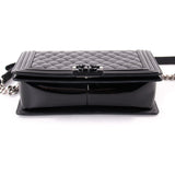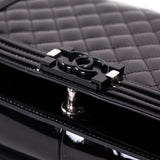 Description: Authentic Chanel New Medium Black Patent Boy Bag
