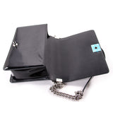 Details: Black Patent Leather / Silver-Tone Hardware / Chain-Link and Leather Pad Shoulder Strap / Cannage Quilted Pattern / Single Compartment / Black Woven Interior Lining / Dual Pockets at Interior, One With Zip Closure / Black Push Lock Closure at Front Flap