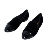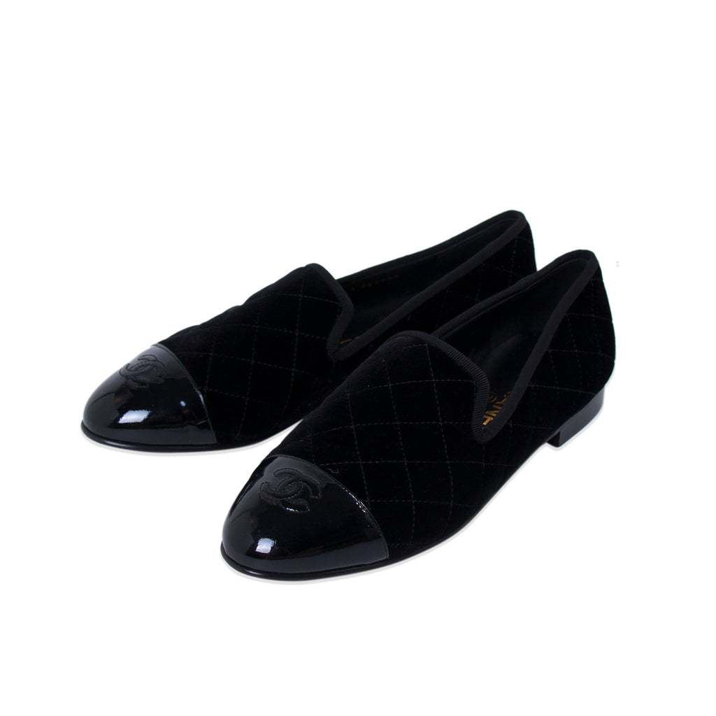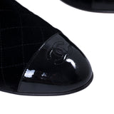 Details: Black Quilted Velvet / Patent Leather Pointed Toe / CC Logo at Vamps / Covered Heels