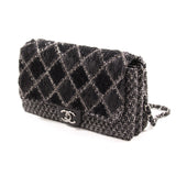 Description: Authentic Pre-Owned Chanel Black Sequin Tweed Flap Bag