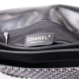 Details: Black and White Sequin and Tweed / Silver-Tone Hardware / Exterior Pocket at Back / Black Leather at Inside Flap / Satin Lining at Interior / Three Compartment / Zip Pocket at Interior Wall / Turn-Lock Closure at Front Flap