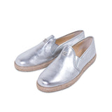 Description: Authentic Pre-Owned Chanel Silver Metallic Leather Espadrilles Loafers