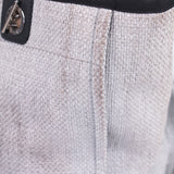 Details: Light Grey Canvas / Silver-Tone Hardware / Black Leather and Grosgrain Trim / Dual Shoulder Straps / Stencil Logo at Front Face / Black Woven Lining / Single Compartment with Three pockets at Interior wall / Snap Closure at Top