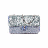 Details: 3 Shades of Blue in Sequin / Silver-Tone Hardware / Chain-Link and Leather Shoulder Strap / Blue Leather Lining / Single Compartment with Zip Pocket at Interior / Turn-Lock Closure at Front Flap
