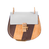 Details: Pastel Grey Goat Leather / Gold-Tone Hardware / Brown and Yellow Mustard Suede Stripes at Front / Chain Shoulder Strap / Grey Interior Suede Lining / One Compartment With Single Pocket / Turn Lock Closure at Front Flap