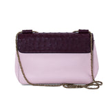 Details: Pink Leather and Burgundy Ostrich Leather / Gold-Tone Hardware / Chain Shoulder Strap / Leather Lining / Single Compartment / Flat Pocket at Inside / Turn-Lock Closure at Front Flap