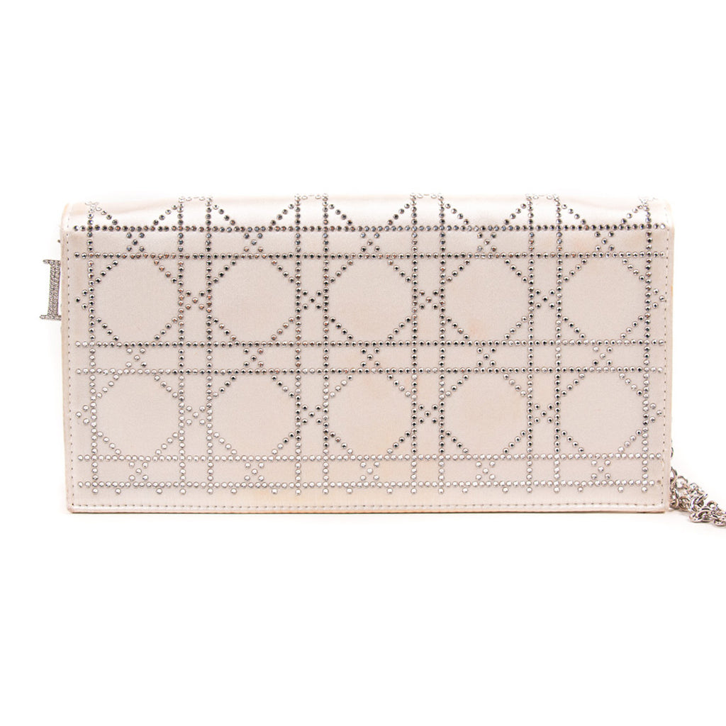 Description: Authentic Pre-Owned Christian Dior Lady Dior Cannage Crystal Satin Clutch