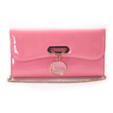 Details: Pink Patent Leather / Gold-Tone Hardware / Detachable Shoulder Strap / Flat Pocket at Exterior Back / Twill and Suede Lining at Interior / Slit Pocket and Zip Pocket at Interior Compartment / Magnetic Snap Closure at Front Flap / Clear Logo Medalion Embellishment Attached To The Flap