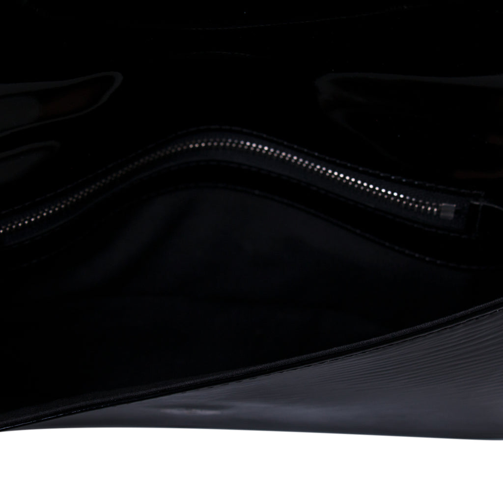 Details: Black Epi Leather / Silver-Tone Hardware / Logo at Front / Fabric Lining / Single Compartment / Zipper Pocket at Inside / Magnetic Snap Closure at Front Face