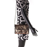Details: Metallic Bronze and Black Shaggy Dear Fabric / Silver-Tone Gunmetal Hardware / Single Shoulder Strap / Black Printed Jacquard Lining at Interior / Single Compartment with One Flat Pocket / Fold Over Closure with Magnetic Snap Button