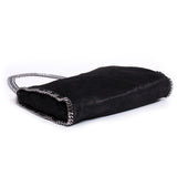 Details: Black Shaggy Deer / Ruthenium Hardware / Chain-Link Trim and Shoulder Strap / Stella McCartney Logo / Fully Lined With Stella McCartney Logo Print Jacquard / Inside Pocket And Top Snap Closure