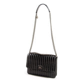 Description: Authentic Chanel Quilted Patent Vertical Single Flap Bag