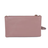 Details: Pale Pink Leather / Brushed Gold-Tone Hardware / Adjustable Shoulder Strap / Detachable Pouch / Fabric Interior / Zipper Closure at Top