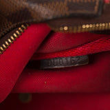 Details: Damier Ebene Coated Canvas / Gold Tone Hardware / Detachable Brown Leather Shoulder Strap / Chain-Link Top Handle / Brown Leather Trim / Red Fabric Interior Lining / Zip Closure at Top