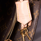 Details: Brown And Tan Monogram Coated Canvas / Natural Cowhide Tan Vachetta Leather Trim / Golden Brass Hardware / Dual Rolled Handles / Detachable Shoulder Strap / Burgundy Alcantara Interior Lining / One Central Zippered Compartment With Padlock / Dual Wide Compartments / One Double BB Pocket / Single Flat Pocket / Protective Studs At Base