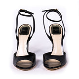 Details: Escapade Black Patent Leather / Strappy Wedge / Inside Leather Lining / Tonal Stitching Throughout / Gold Tone Buckle At Ankle / Python Skin Covered Wedge