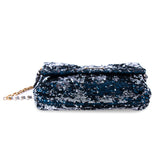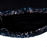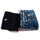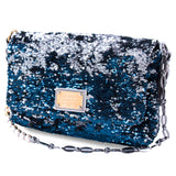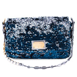 Details: Silver and Blue Sequin / Gold and Silver-Tone Hardware / Chain-Link and Pearls Shoulder Strap / Suede Interior Lining / Zipper and Flat Pocket / Magnetic Snap Closure at Front Flap