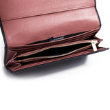 Details: Black Grained Leather / Gold-Tone Hardware / Logo Plate at Front / Six Cards Slots / Slit Pocket at Back and Under the Flap / Three Compartments, One with Zip Closure / 1 Flat Pocket and 12 Card Slots / Push-Button Closure at Front