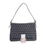 Details: Black and Grey Fendi Zucca Canvas / White Leather Trim / Gold-Tone Hardware / Logo at Front / Adjustable Shoulder Strap / Black Fabric Interior / Zipper Pocket at Inside / Magnetic Snap at Front Flap