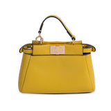 Details: Yellow Nappa Leather / Gold-Tone Hardware / Detachable Adjustable Shoulder Strap / Single Rolled Top Handle / Dual Compartments / Grey Microfiber Lining / Two Card Slots / Turn Lock Closure and Snap Closure