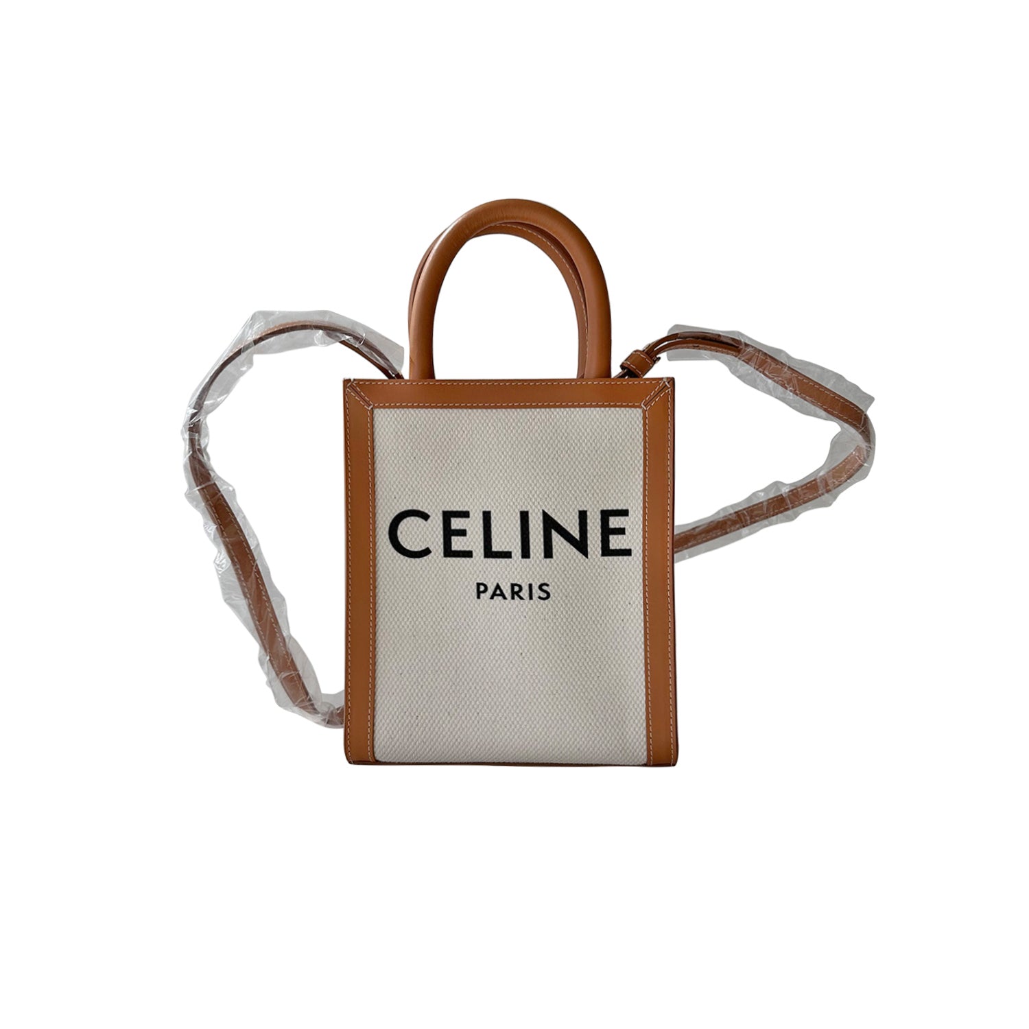 Description: Authentic New Céline Mini Vertical Textile Cabas in Céline Print and Calfskin
