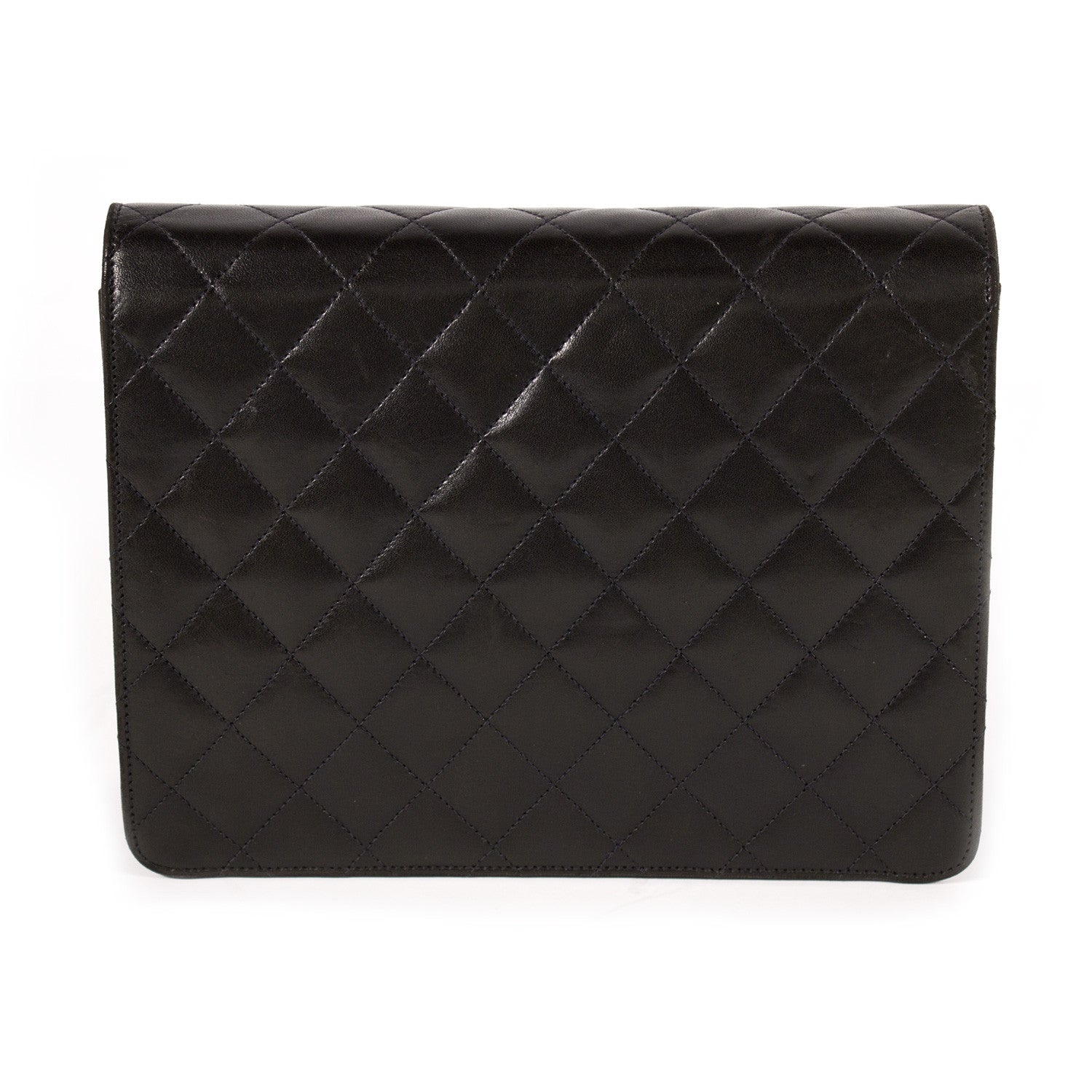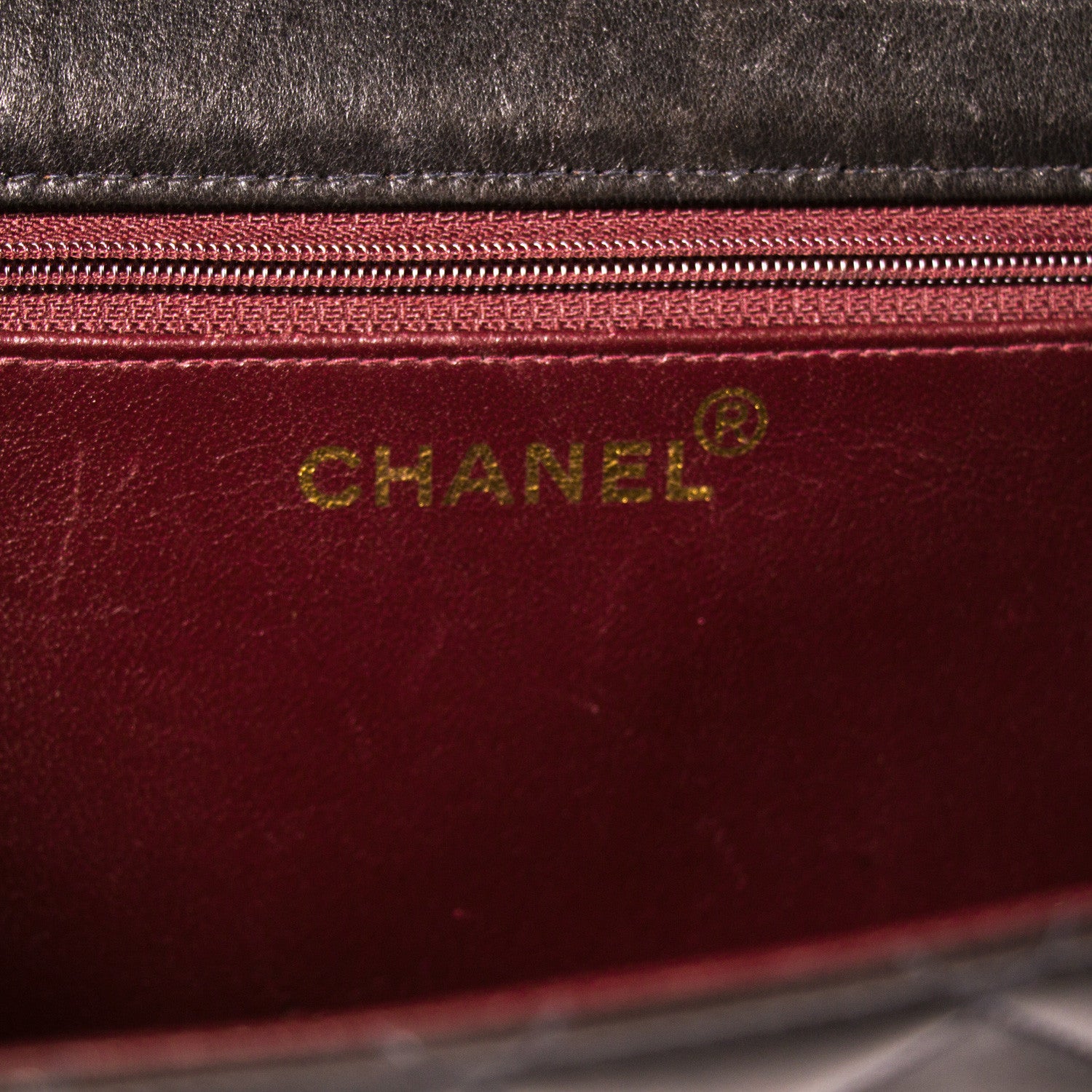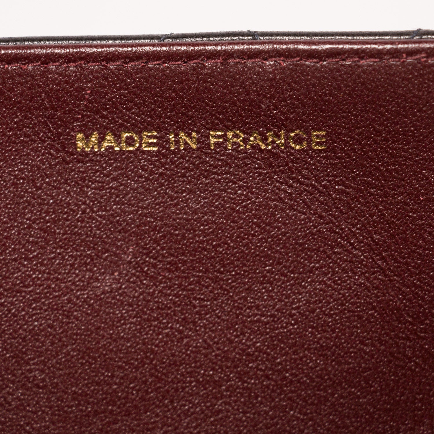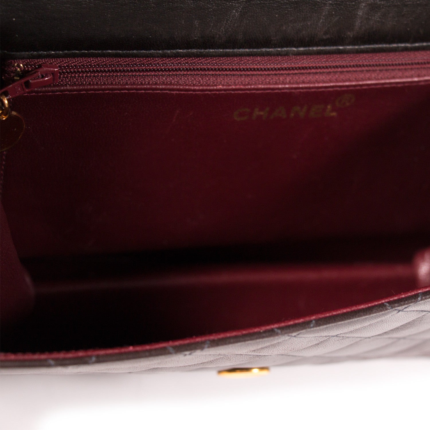 Details: Black Quilted Lambskin Leather / Gold Tone Hardware / Single Chain-Link And Leather Accent Shoulder Strap / Burgundy Leather Interior Lining / Single Zip Pocket At Interior Wall / Flap Closure At Front With Push Lock