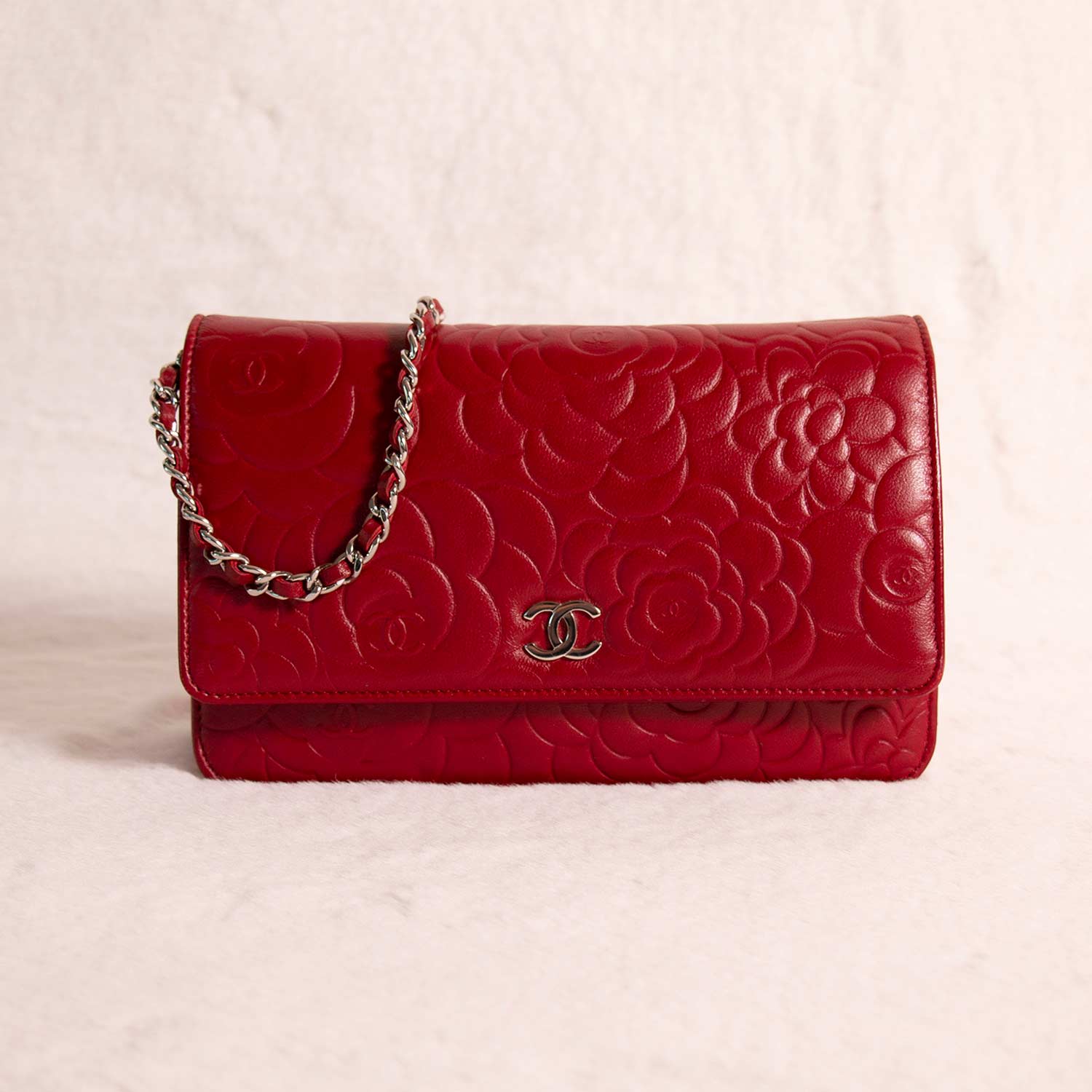 Description: Authentic Pre-Owned Chanel Camelia Flower Wallet on Chain