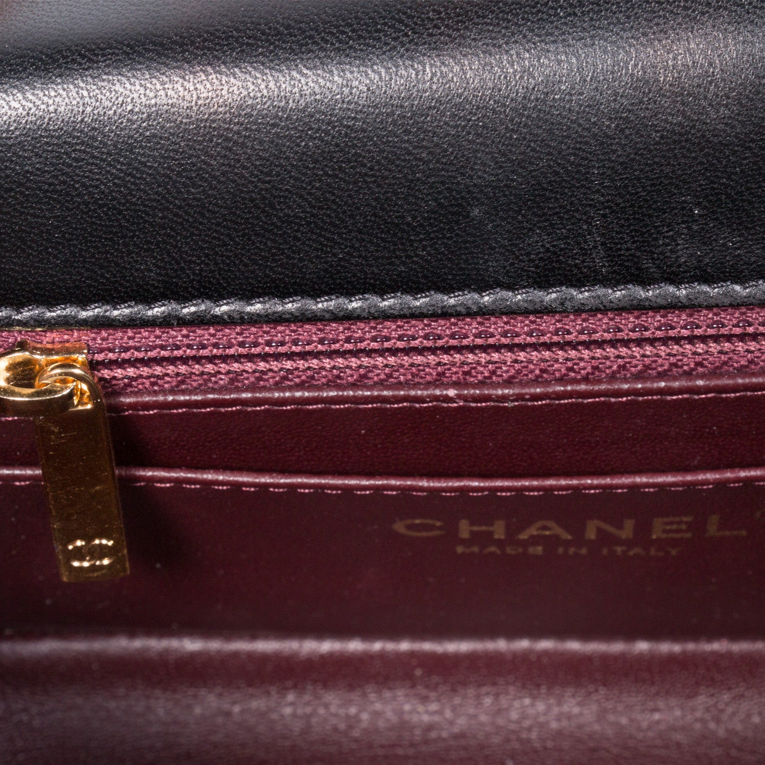 Details: Black Quilted Leather Chanel / Gold-Tone Hardware / Gold Chain Link Shoulder Strap With Leather / Bordeaux Interior Leather / Two Interior Pockets, One With Zip Closure And Another Patch Pocket / Chanel CC Push Clasp Closure At Front Face