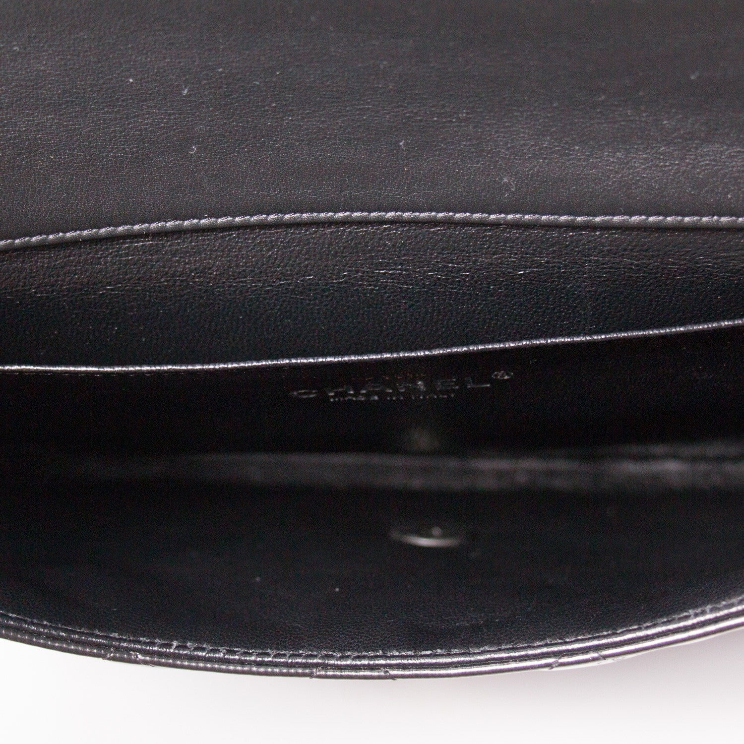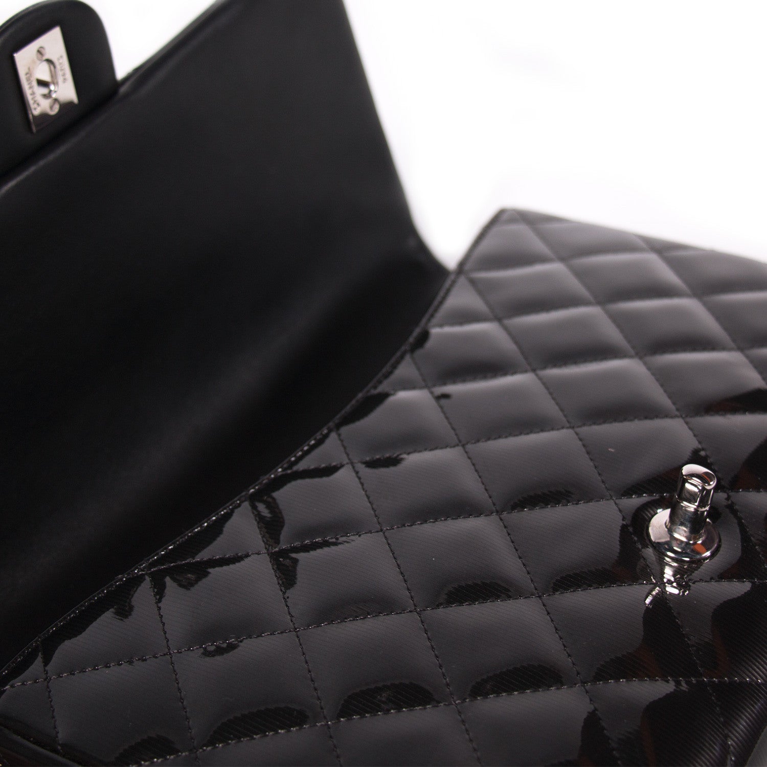 Details: Black Patent Quilted Leather / Silver-Tone Hardware / Single Shoulder Strap / Exterior Pocket At Back / Single Compartment / Flat Pocket At Interior / Turn Lock Closure At Front Flap