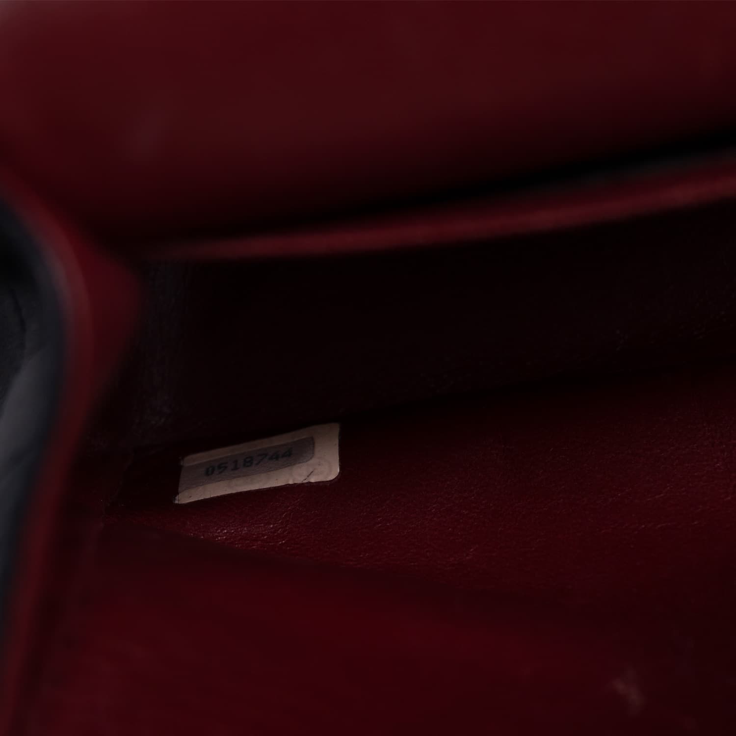 Details: Black Smooth Lambskin Leather / Gold-Tone Hardware / Dual Chain-Link and Leather Shoulder Strap / Exterior Flat Pocket at Back / Burgundy Leather Lining / Dual Compartments / Two Flat Pockets at Inside / Interior Flap Closure with Push Button Closure / Turn Lock Closure at Front Flap