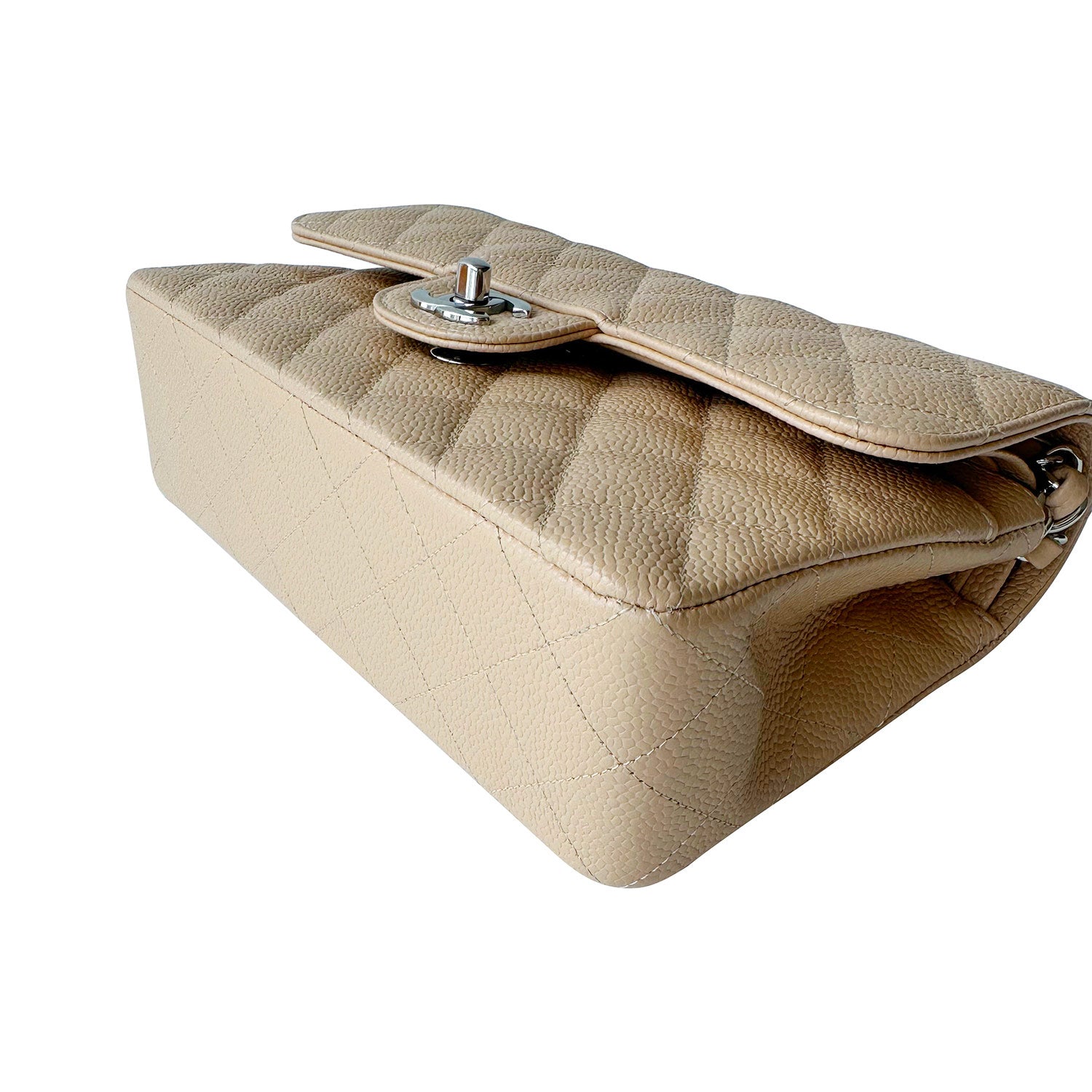 Description: Authentic New Chanel Classic Small Double Flap in Neutral Grained Calfskin Leather