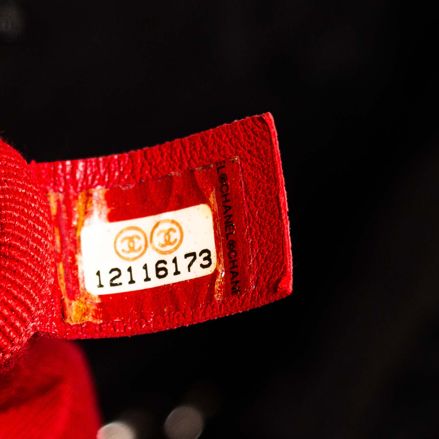 Details: Black Quilted Jersey / CHANEL, LA Stitching at Front / Silver-Tone Hardware / Chain Link and Leather Strap / Red Canvas Interior Lining / One Compartment with One Zip Pocket / Zipper Closure at Top