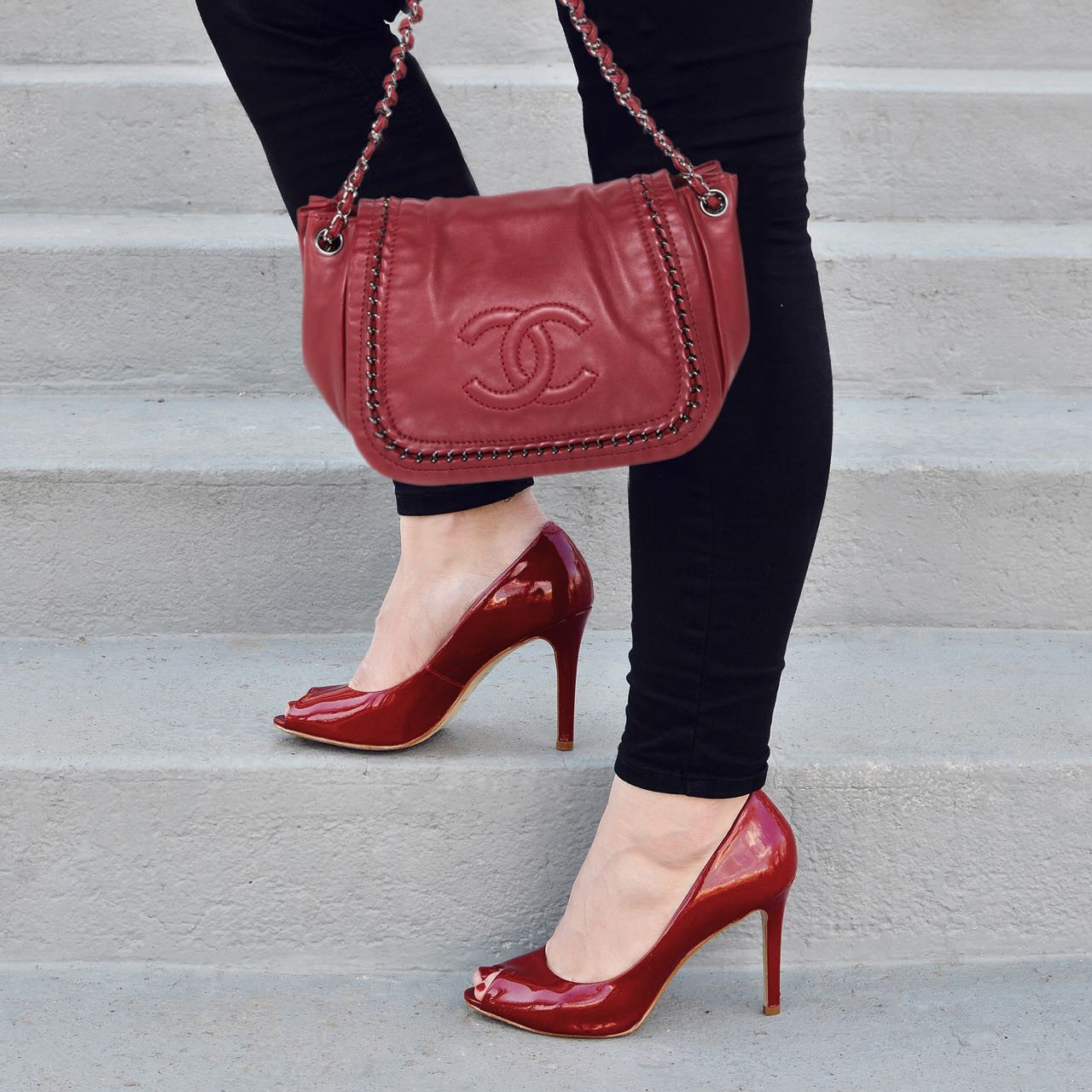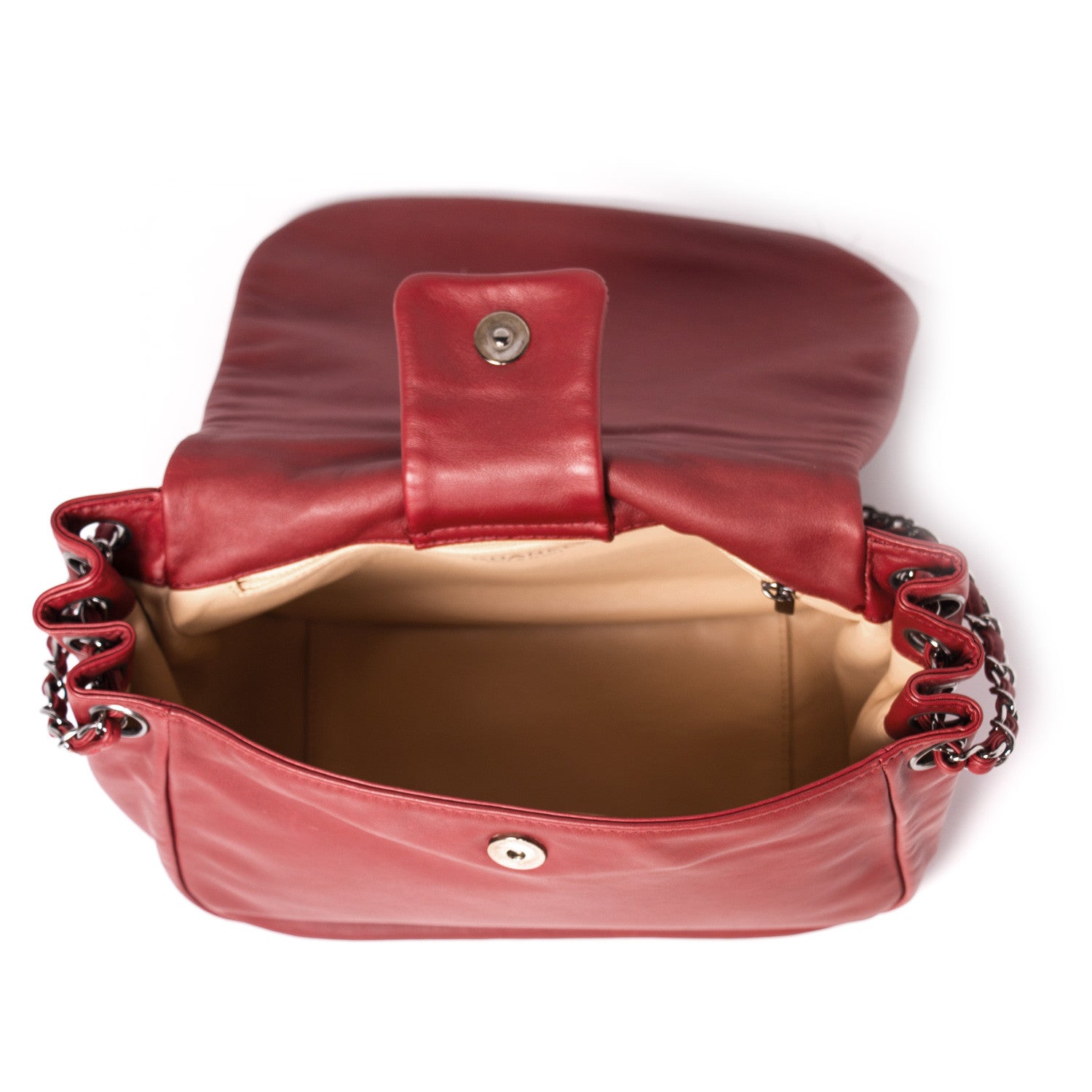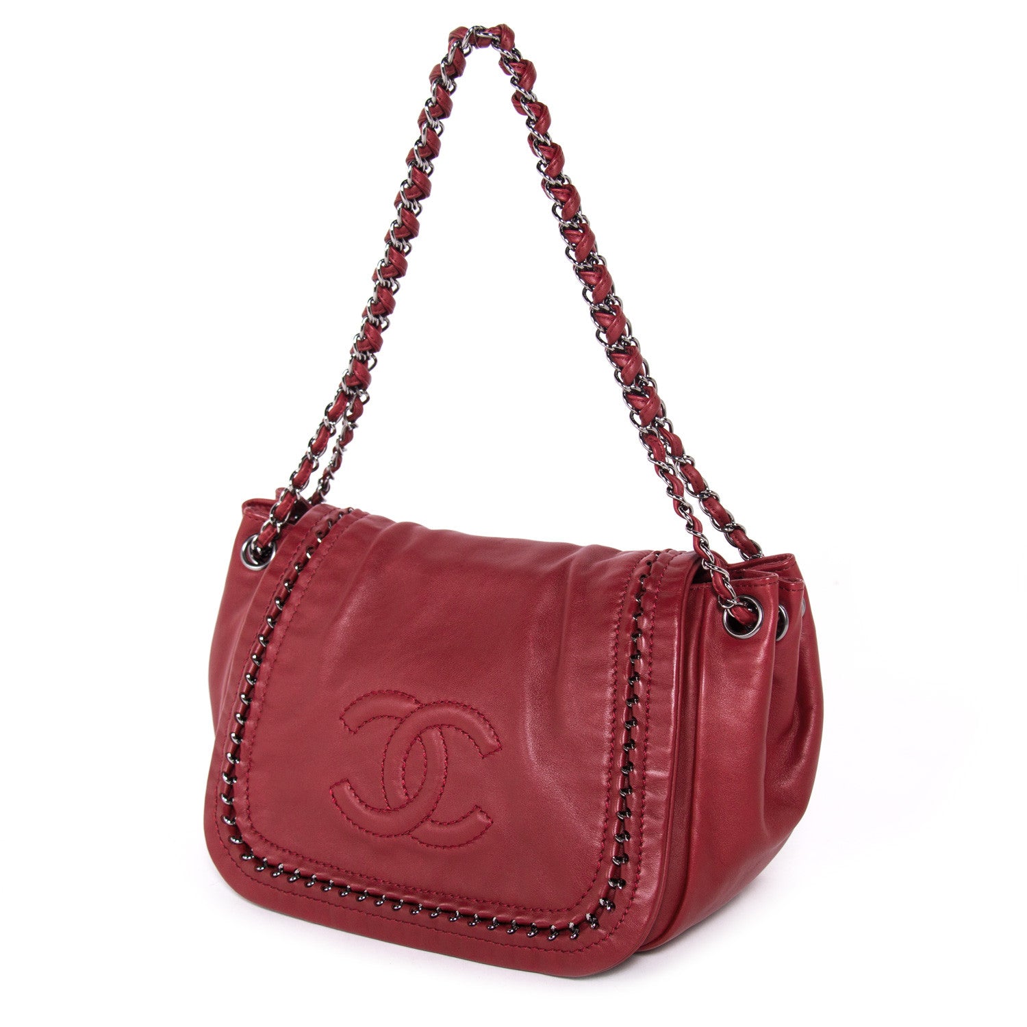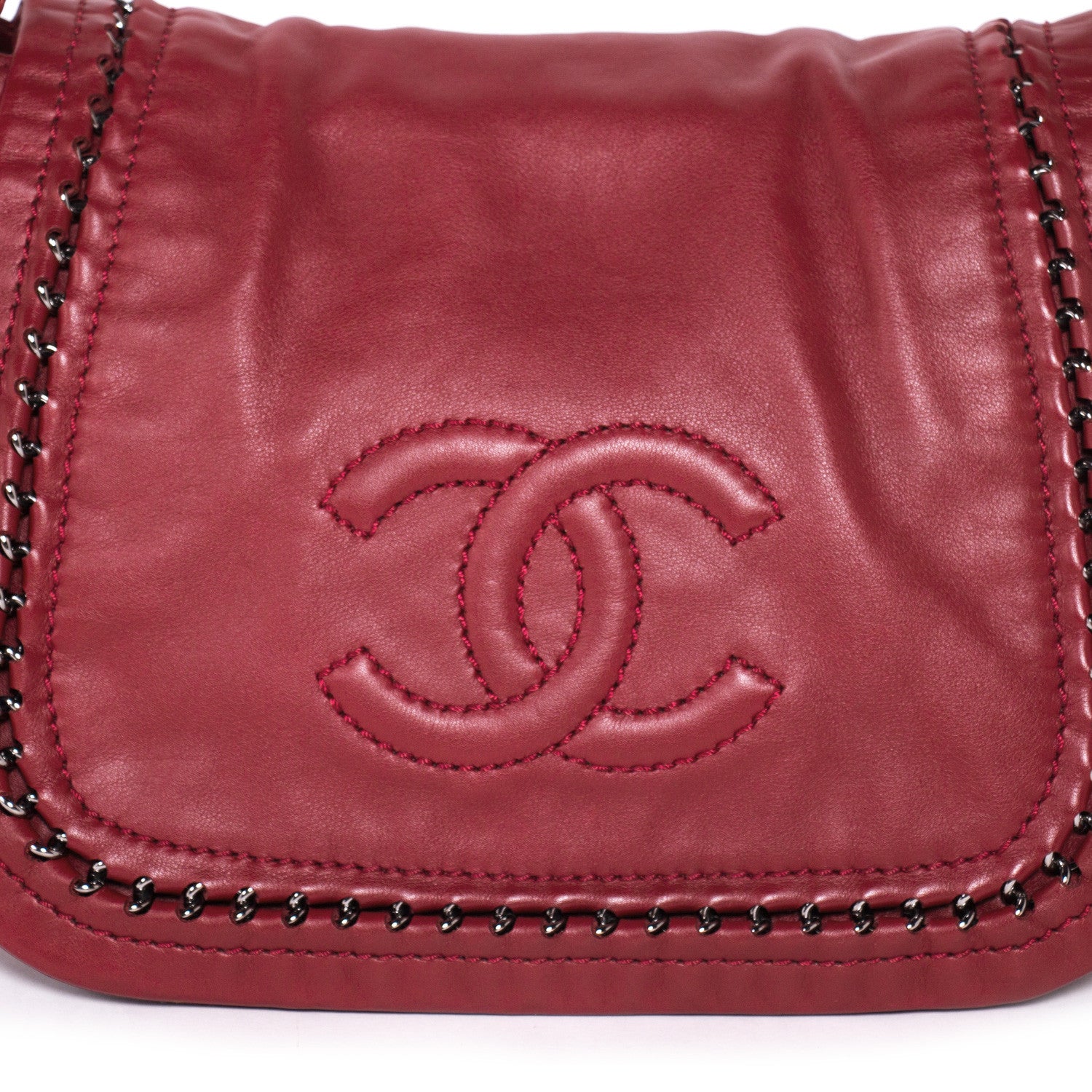 Details: Burgundy Leather / Silver-Tone Hardware / Braided Leather And Chain Shoulder Strap / Tonal Stitching / Logo At Front / Beige Leather Interior Lining / Dual Pockets At Interior Walls, One With Zip Closure / Interior Magnetic Snap Closure / Flap Closure At Front