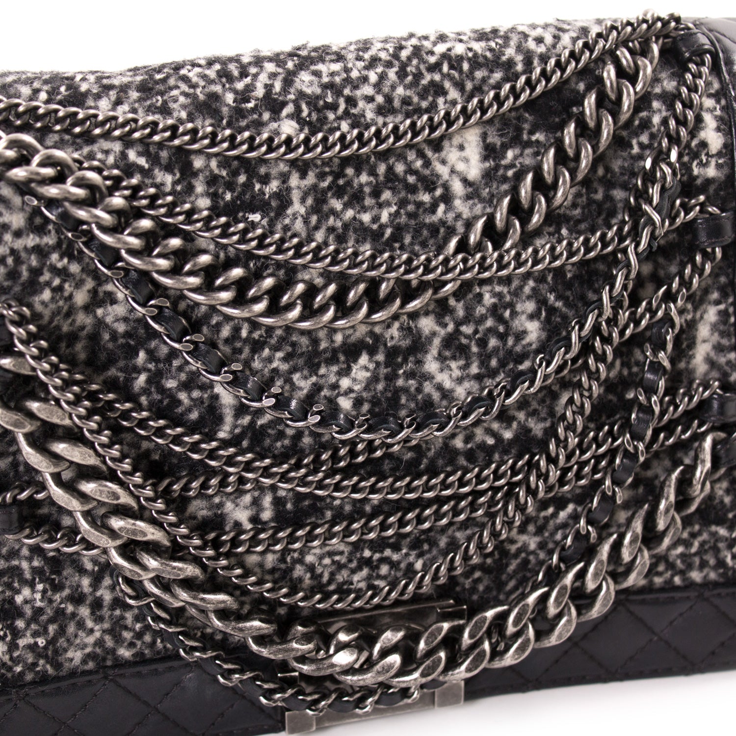 Description: Authentic Pre-Owned Chanel New Medium Enchained Leather Tweed Boy Flap Bag