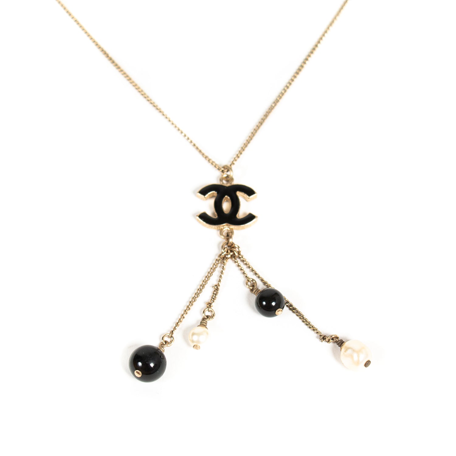 Details: Black and White Pearls / Silver-Tone Hardware / Black CC Logo / Adjustable Size / Lobster Clasp Closure