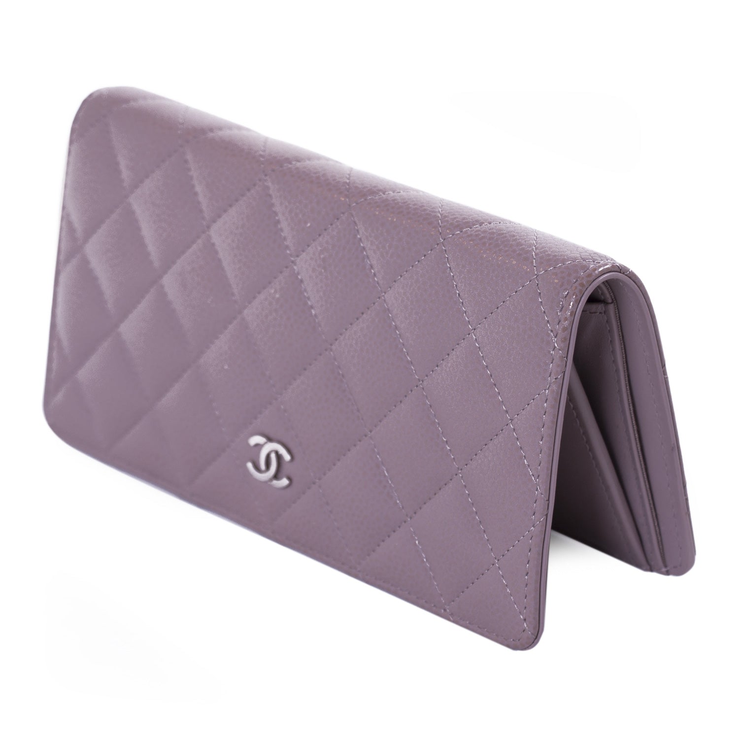 Details: Taupe Caviar Quilted Leather / SilverHardware / CC Logo At Front Face / Exterior Pocket At Back / Grey Leather Lining / Five Bill Compartment / Zipper Pocket / Eight Card Slots / Flap Closure