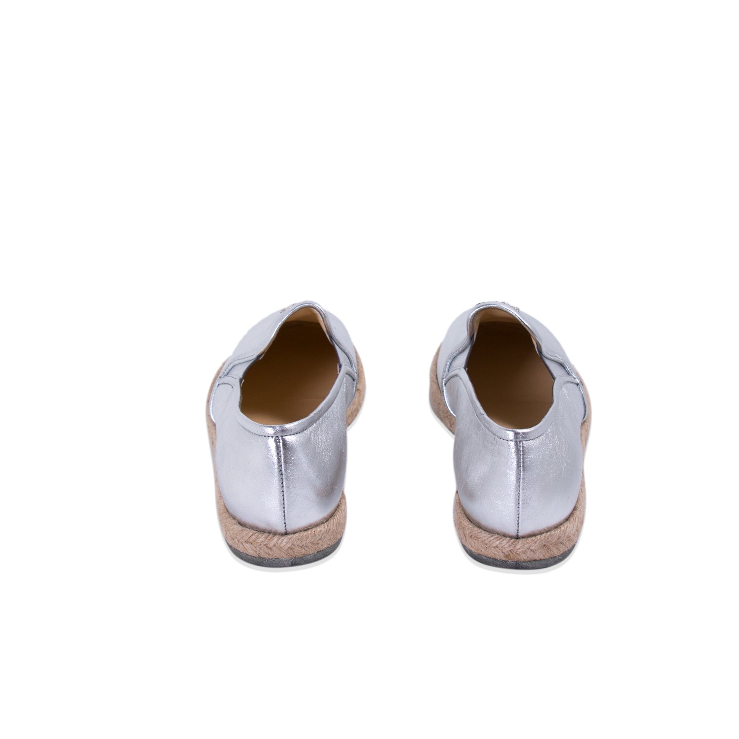 Details: Silver Metallic Leather / CC Logo at Vamps / Jute Trims / Rubber Sole