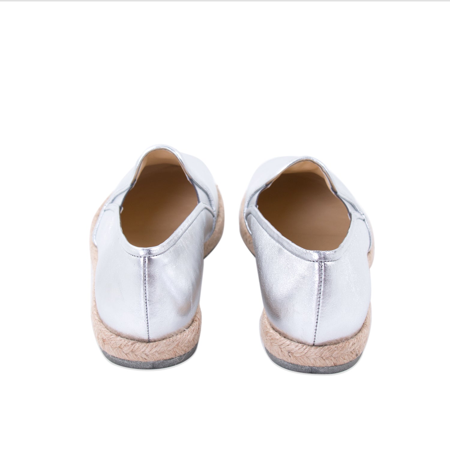 Details: Silver Metallic Leather / CC Logo at Vamps / Jute Trims / Rubber Sole