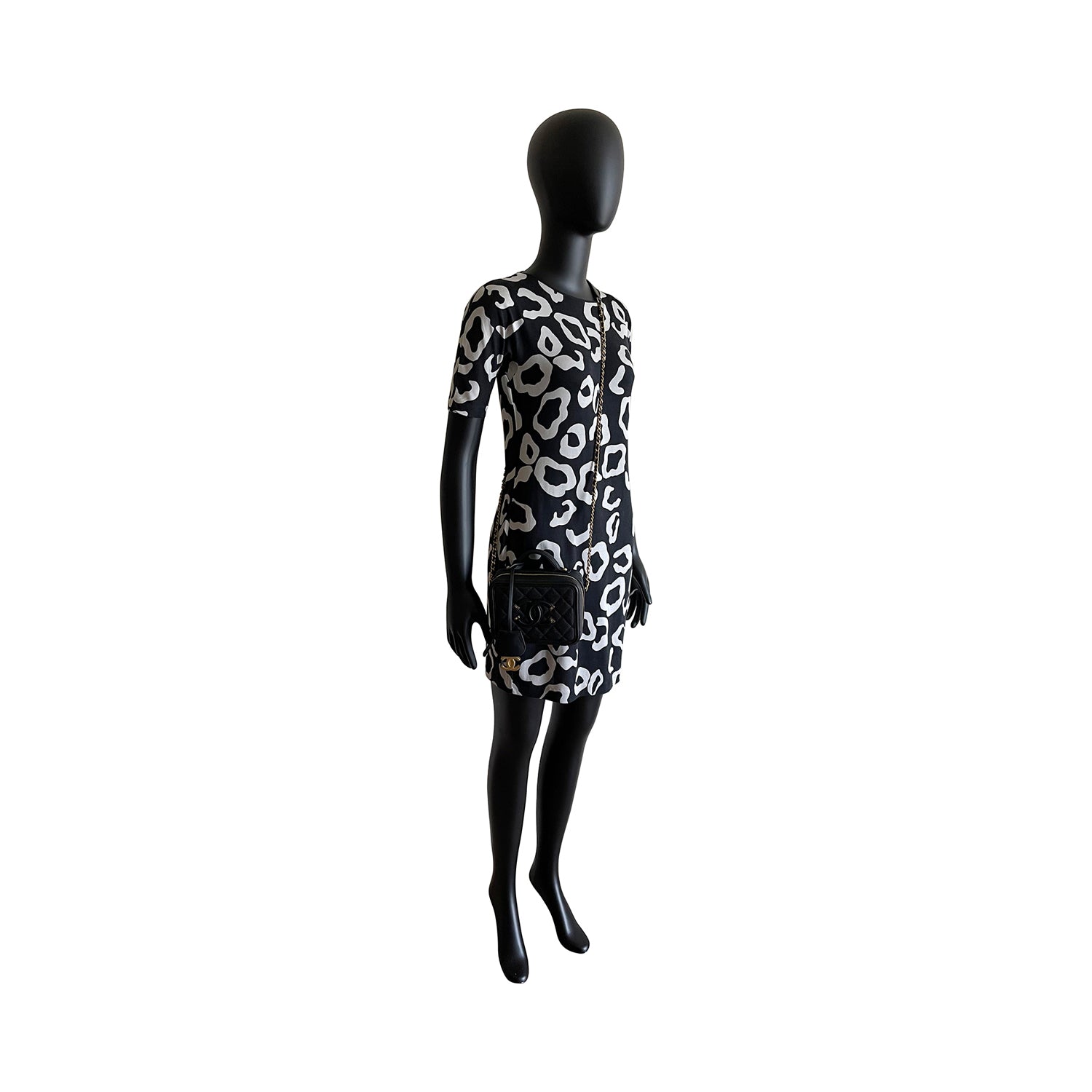 Black Calfskin Leather with Interlocking CC Logo at Front