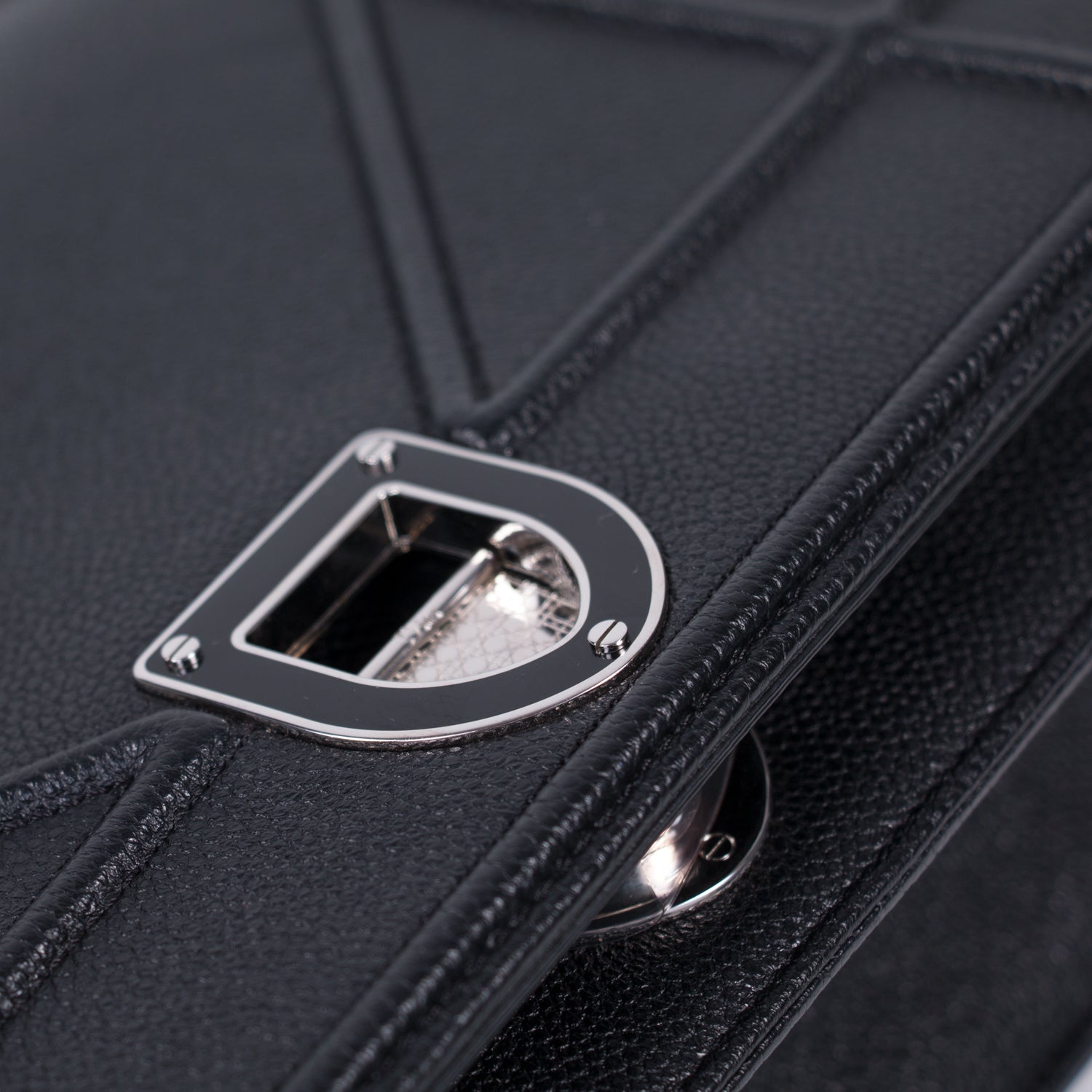 Details: Black Grained Calfskin Leather / Black and Silver Tone Hardware / Adjustable Shoulder Strap / Poudre Satin Lining at Interior / One Zip Pocket and One Slit Pocket at Interior / Push-Lock Closure at Front Flap