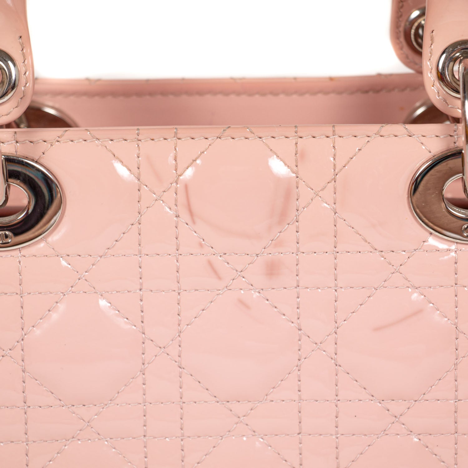 Description: Authentic Pre-Owned Christian Dior Light Pink Patent Lather Large Lady Dior