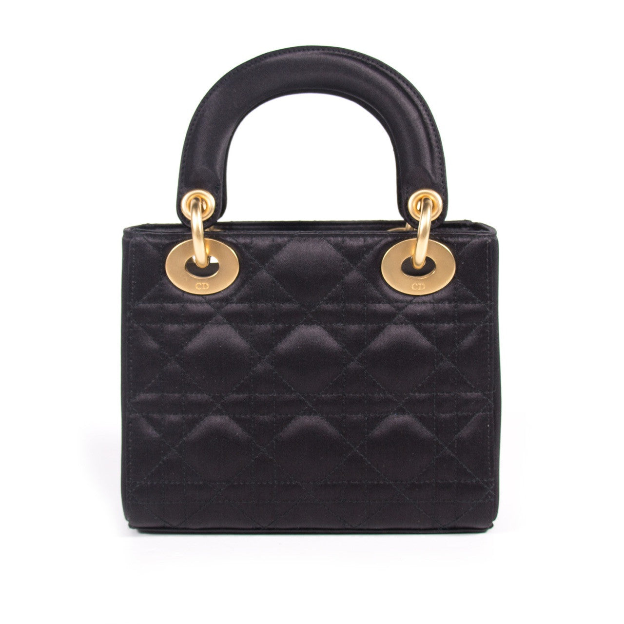 Description: Authentic Christian Dior Black Satin Micro Lady Dior