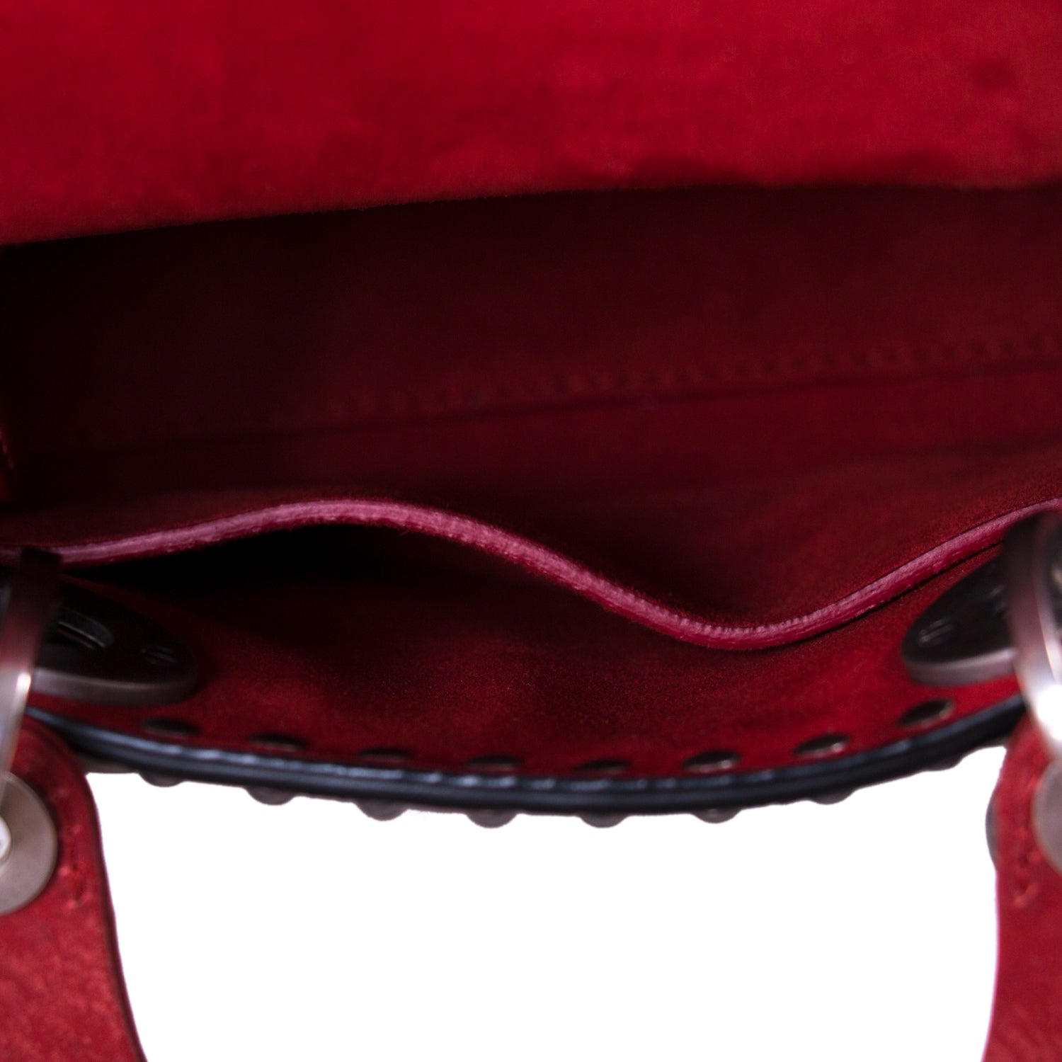 Details: Red Studded Calfskin Leather / Studded Flower Motifs / Aged Silver-Tone Hardware / Dual Rolled Handles / Detachable Chain Shoulder Strap / Suede Interior Lining / Zipper and Flat Pocket at Inside / Flap at Top