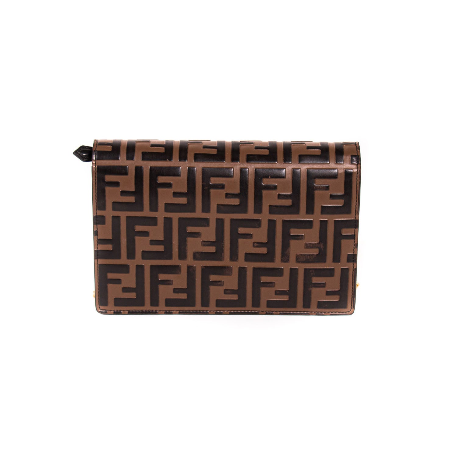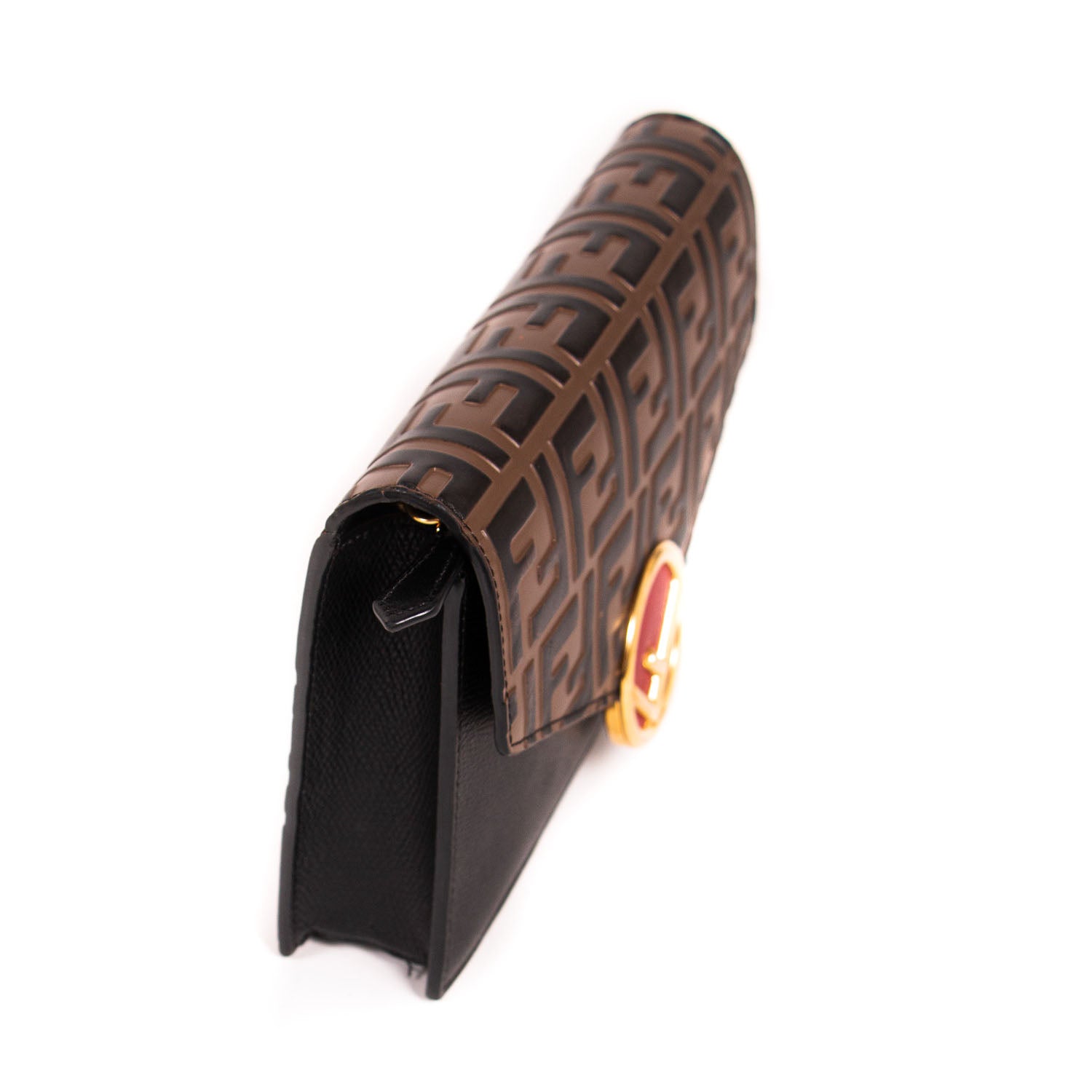 Details: Black and Brown Calf Leather / Gold-Tone Hardware / Detachable Chain-Link Shoulder Strap / F Logo at Front / FF Embossed Logo Throughout / Interior Leather Lining / Zipper and Bill Compartment at Inside / Ten-Card Slots / Magnetic Snap Closure at Flap