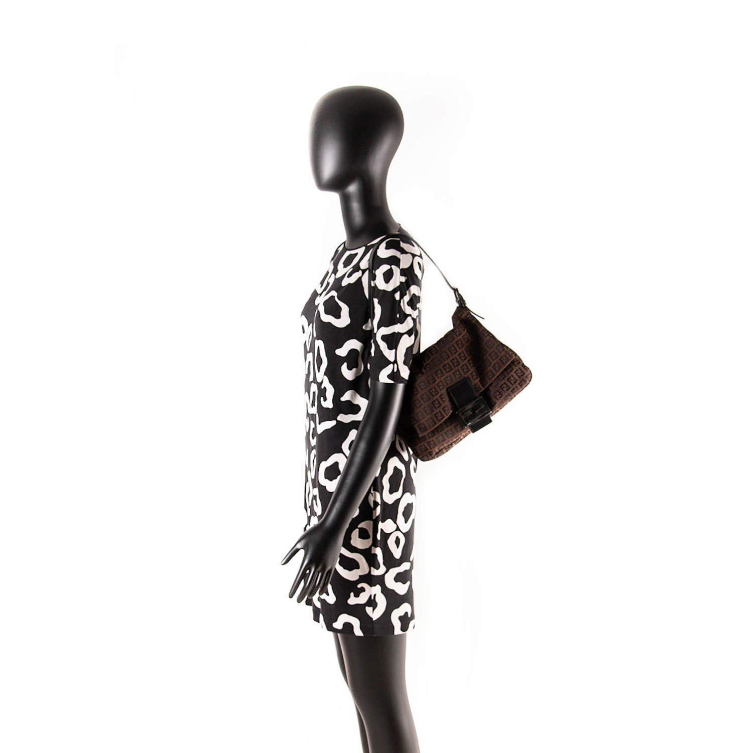 Details: Brown Zucca Canvas / Silver-Tone Hardware / Black Leather Adjustable Shoulder Strap / Brown Fabric Interior Lining / Single Pocket at Interior Wall / Snap Closure at Front