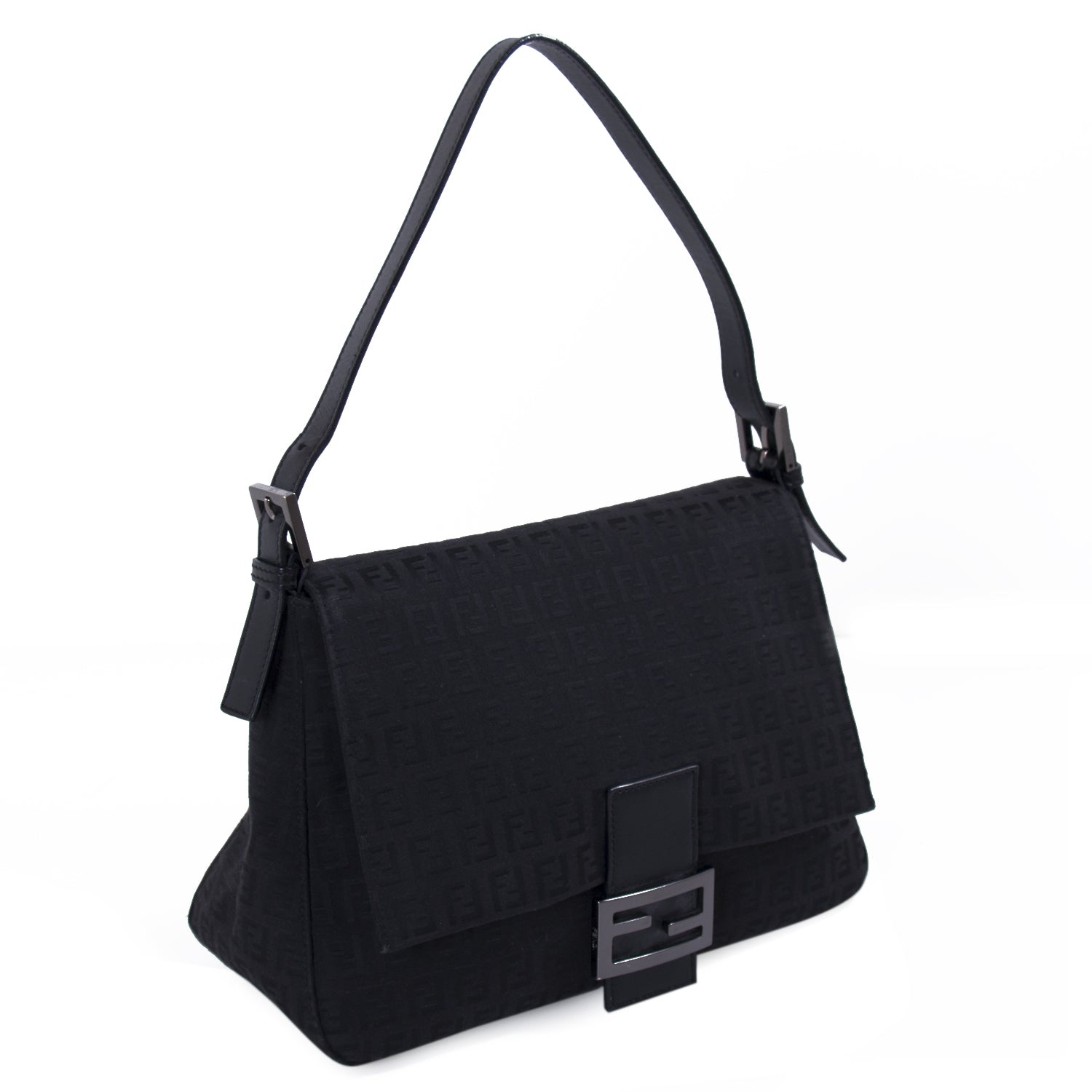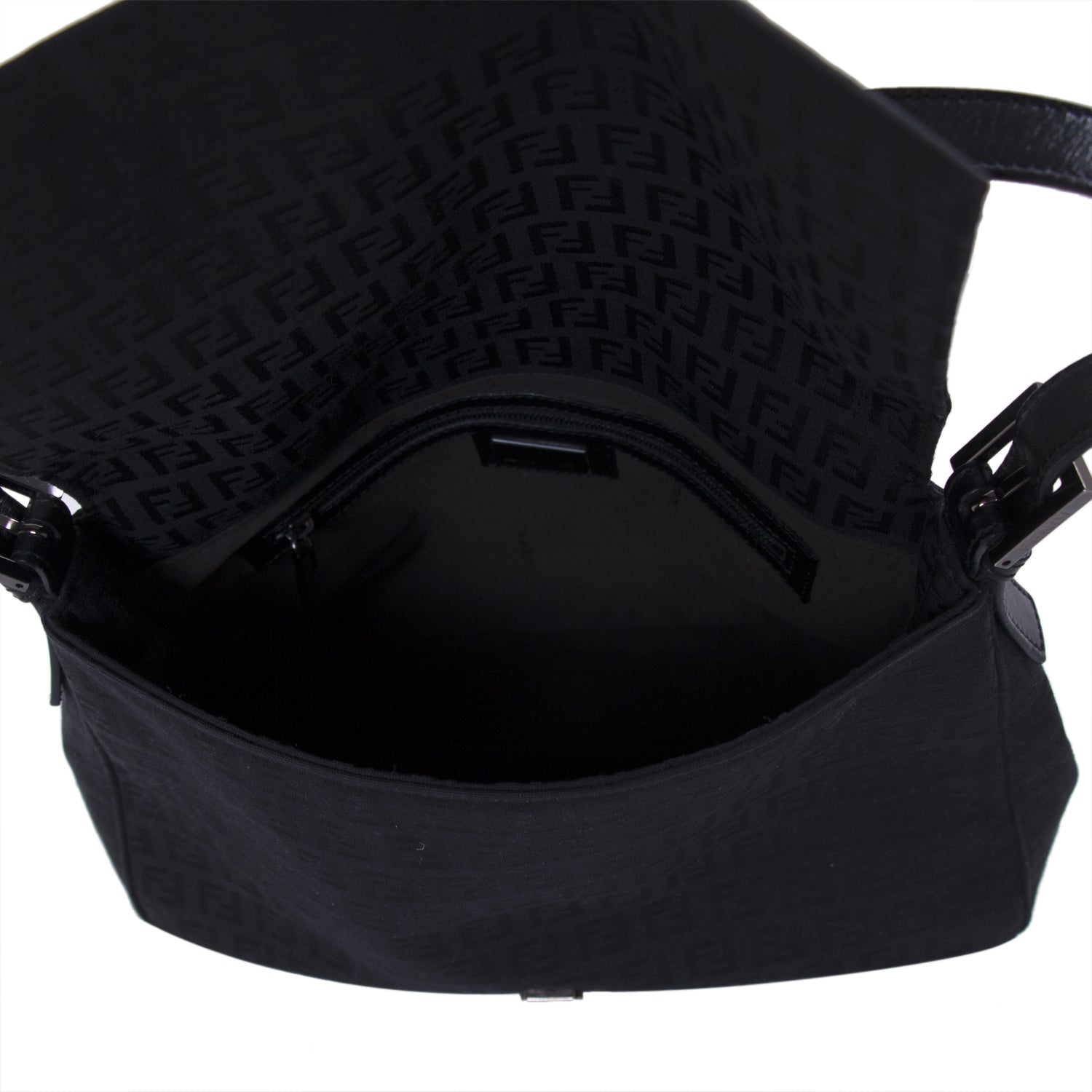 Details: Black Zucca Canvas / Silver-Tone Hardware / Black Leather Adjustable Shoulder Strap / Brown Fabric Interior Lining / Single Pocket at Interior Wall / Snap Closure at Front