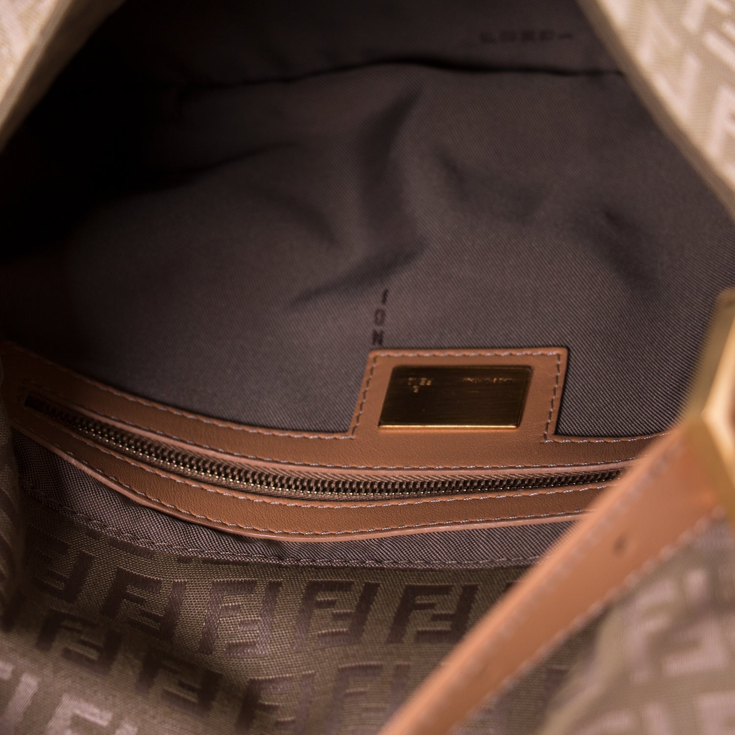 Details: Tan Zucca Canvas / Gold-Tone Hardware / Tan Leather Adjustable Shoulder Strap / Light Brown Fabric Interior Lining / Single Pocket at Interior Wall / Snap Closure at Front